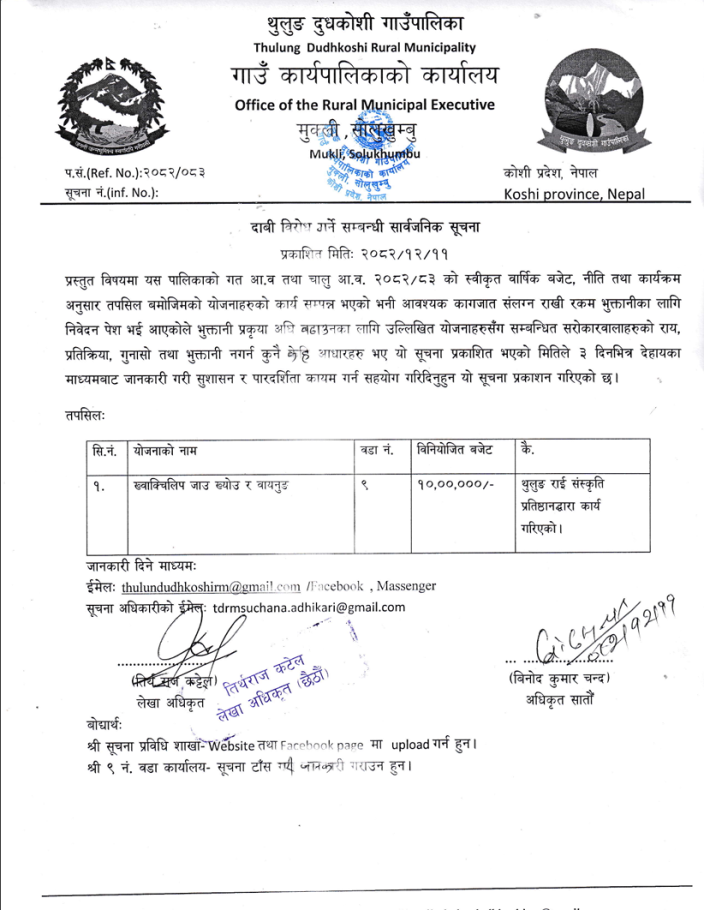 दाबी विरोध गर्ने सम्बन्धी सार्वजनिक सूचना ।