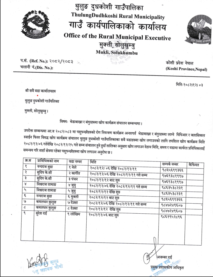 भेडाबाख्रा र बंगुरहरुमा खोप कार्यक्रम संचालन सम्बन्धी सूचना ।