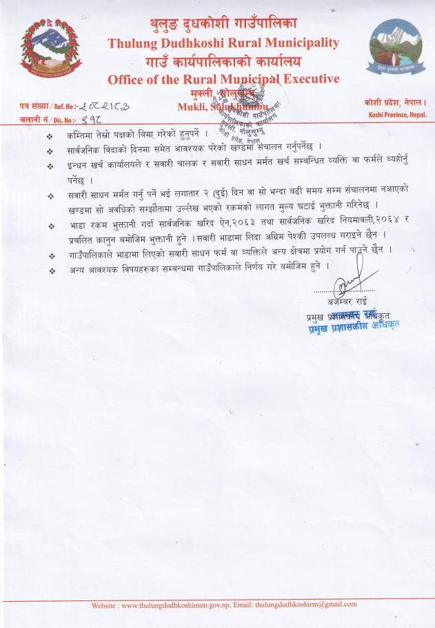 सवारी साधन भाडामा लिने सम्बन्धी जरुरी सूचना ।