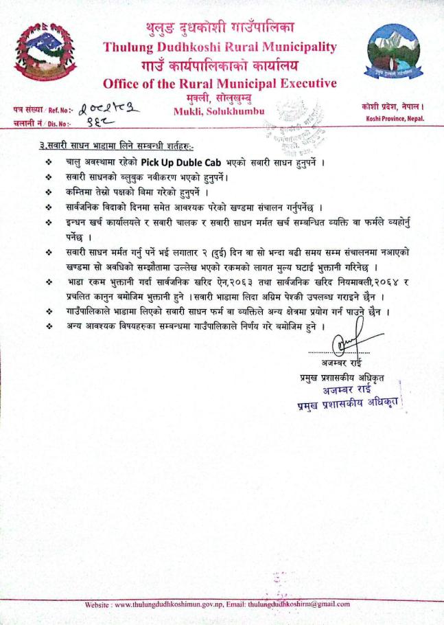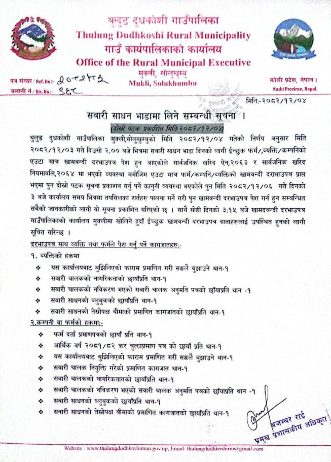 सवारी साधन भाडामा लिने सम्बन्धी जरुरी सूचना ।