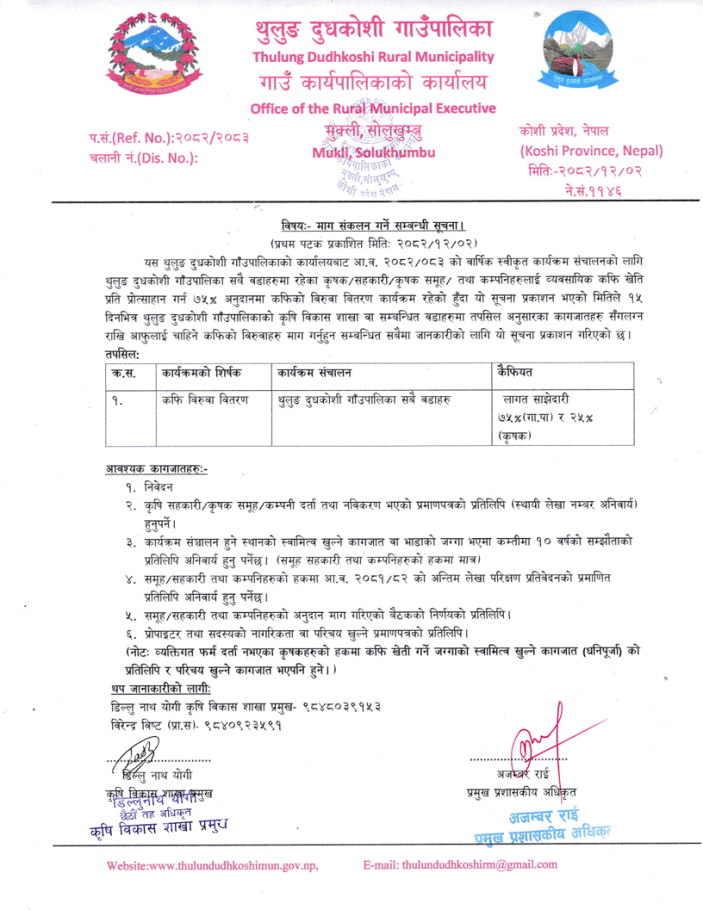 कफिको विरुवा माग गर्ने सम्बन्धी जरुरी सूचना !