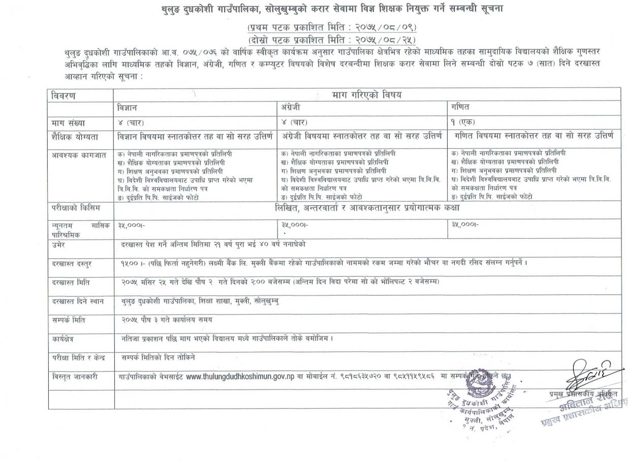 करार सेवामा शिक्षक नियुक्त गर्ने सम्बन्धमा(दोश्रो पटक प्रकाशित)