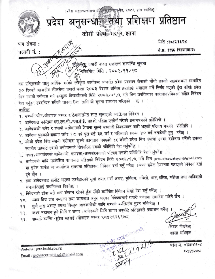 लोकसेवा तयारी कक्षा सञ्चालन सम्बन्धी जरुरी सूचना ।