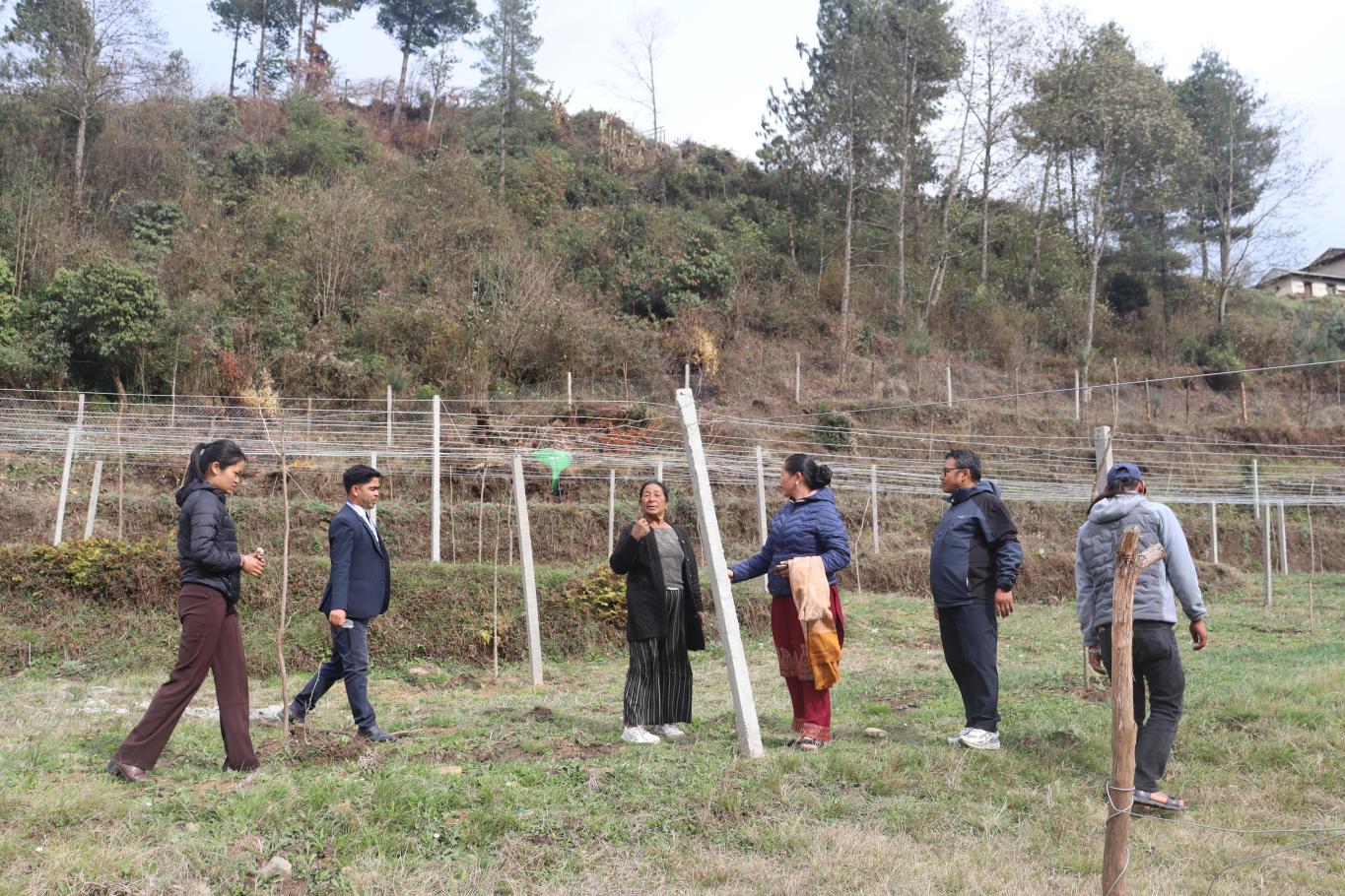 "पहाडि क्षेत्र काष्ठफल तथा फलफूल विकास याेजना" NAFHA अन्तरगत थुलुङ दुधकाेशी गा. पा. (देउसा, मुक्ली, कांगेल र नेले) मा सञ्चालन भएका नयाँ किवि बगैँचा स्थापना कार्यक्रमकाे फिल्ड अनुगमन ।