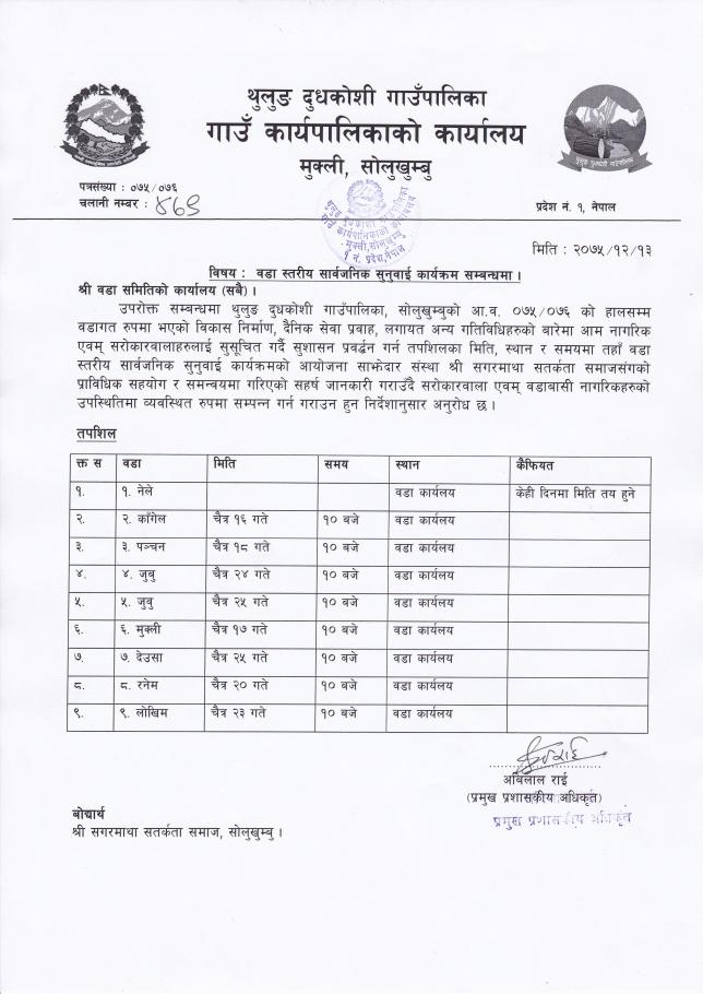 वडा स्तरीय सार्वजनिक सुनुवाइ कार्यक्रम सम्बन्धमा